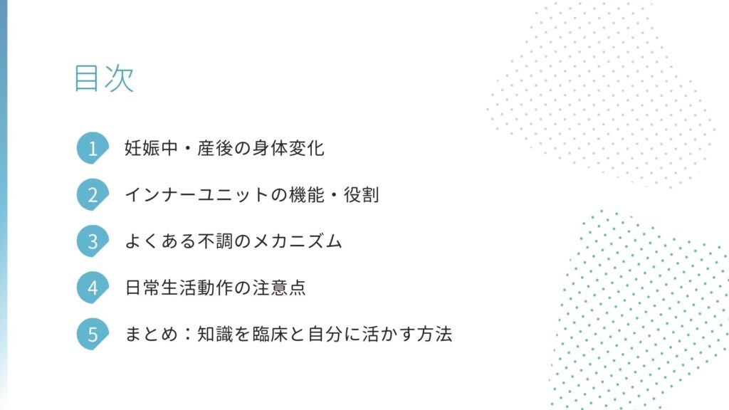 まずは自分の体に起こった変化をちゃんと頭で理解するっていうことができれば、疑問も減るし、余計な不安とかも減るのではないかと思って、産前産後のPTOTさん向けに産前産後の体の変化をギュッとまとめた基礎動画を作りました!