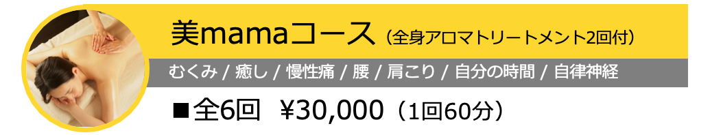産後回復コースor一般コース3回にアロマビューティーサロンLea(レーア)さんでの全身アロマトリートメントケアが2回ついた、全3回がセットになったコースです。