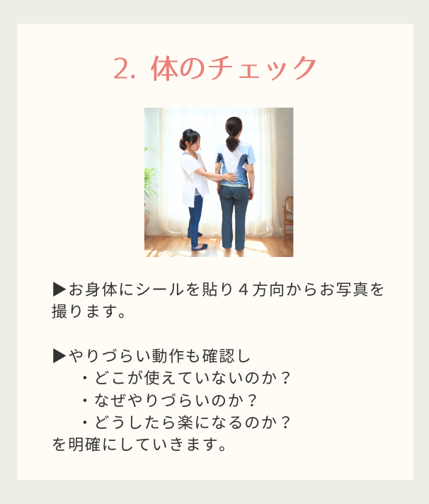 コーラルリズムのケアは、しっかり自分の「今」の状態を把握するところから始まります。自分のからだのクセや問題になる部分に焦点を当てて、家でも簡単に取り組めるセルフケアをお伝えするところまで行います。
