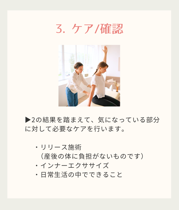 生活の中で不調を繰り返さないよう、抱っこや授乳時のカラダの使い方などもお伝えしています。
